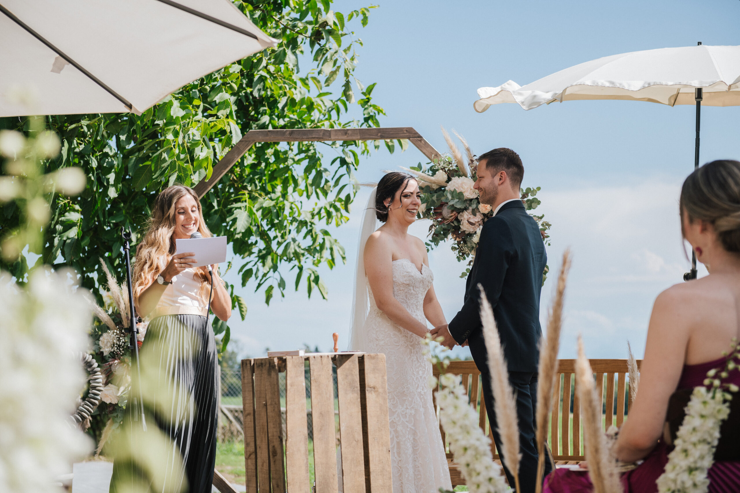 Ihr fragt euch, wie ich überhaupt auf die Tätigkeit als Traurednerin gekommen bin? Ehrlich gesagt, aus Langeweile… ich arbeitete im Vollzeitpensum in der Kommunikation und war jeden Tag im selben Büro, am selben Schreibtisch – und brauchte dringend etwas Abwechslung. Die Organisation unserer eigenen Hochzeitsfeier und die Anfrage von Freunden haben mich ermutigt, freie Trauungen anzubieten. Das war von mehr als fünf Jahren und in der Zwischenzeit durfte ich über 25 Paare verheiraten. Und: es ist der schönste Job überhaupt.